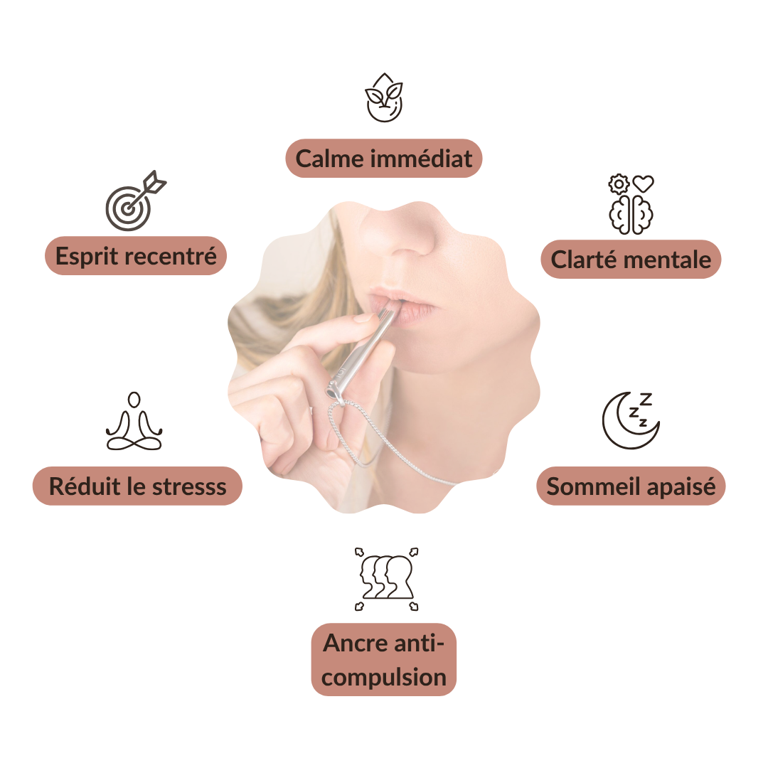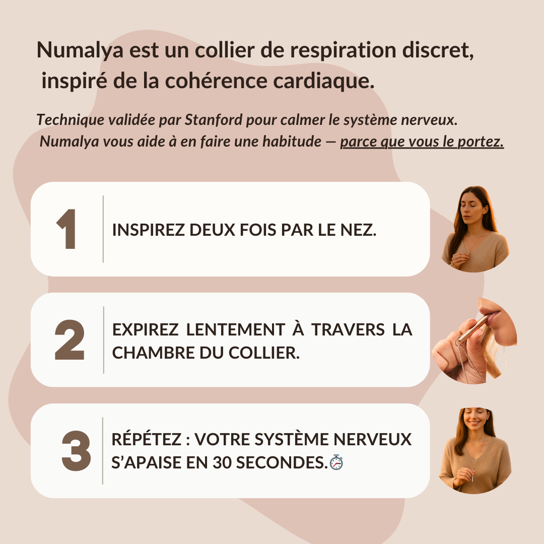 En soufflant lentement dans ce collier, vous enclenchez un mécanisme naturel de calme. Et ce calme change tout.